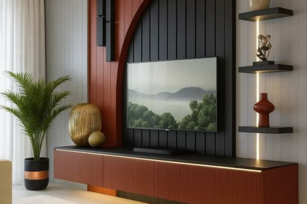 Premium gypsum TV unit designs that give your living room a luxurious and customized appearance.